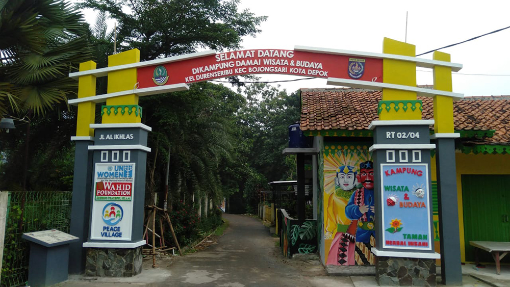 Duren Seribu – The construction of Peace Village and Cultural Tourism Destination in RT02/04 Duren Seribu Village, Bojongsari Sub-District, has reached a significant progress. Soon, the construction of the village gate as the entrance to the Peace Village will be finished.