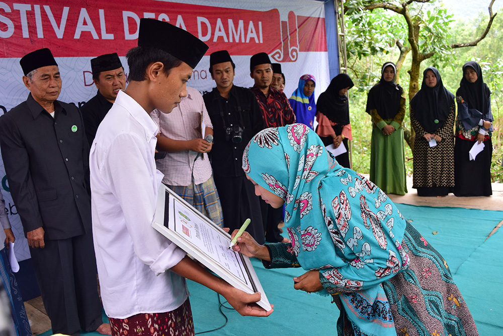 Before Wahid Foundation team arrived and the Peace Village Declaration was held, the Pasae’ Community had started to assist farmers in Payudan Dundang Village. The community, which is partnered with Wahid Foundation, is mostly run by female pre-university and university students, and female teachers at Annuqayah Islamic Boarding School in Sumenep, Madura. The Pasae’ Community is under the patronage of the Annuqayah Islamic Boarding School Community Development Bureau (BPM).