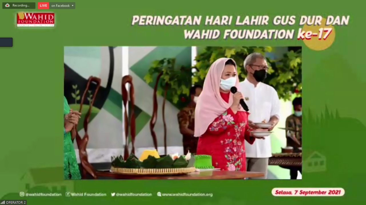 It was mentioned by Yenny during the commemoration event of the birth of the 4th President of Indonesia, Abdurrahman Wahid (Gus Dur) which is also a celebration for Wahid Foundation’s 17th anniversary, on Tuesday (7/9/2021). “The commemoration of the birth of Gus Dur is not an ordinary commemoration. Today is the moment for Wahid Foundation, which also celebrates its 17th anniversary, and all of us to continue to pursue Gus Dur’s aspirations to make our nation a peaceful, righteous and prosperous nation,” said the woman whose full name is Zannuba Ariffah Chafsoh Rahman Wahid.