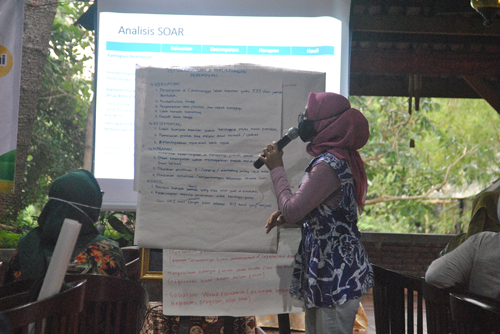 motion of gender justice and the fulfillment of women's rights at the community level," said Visna Vulovik. These guidelines also refer to the nine Indicators of Peace Villages/Kelurahans, the foundations of a Peace Village/Kelurahan. In addition, the Wahid Foundation also provided monitoring and evaluation guidelines that refer to the protection mechanism for women and adolescents, so that they can protect their families and communities in relation to human rights issues, including how they protect themselves from crises, such as disasters, pandemics, conflicts, and radicalism.